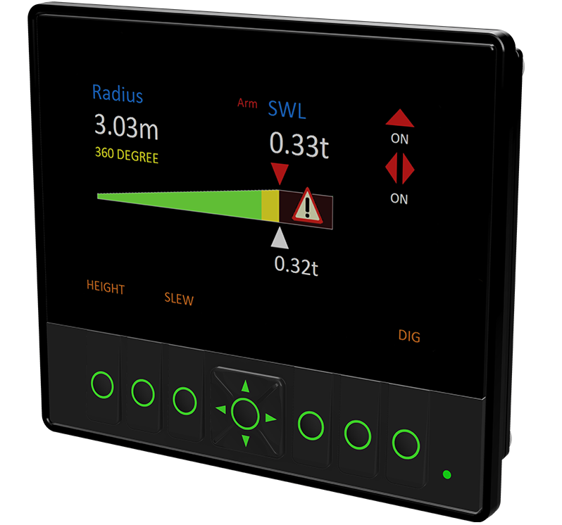 The XW series creates a total safe working envelope around the machine and operator enabling the control of the machine's height, slew and rated capacity indication. This comprehensive system covers every eventuality when considering both operator and machine safety, offering complete peace of mind.
