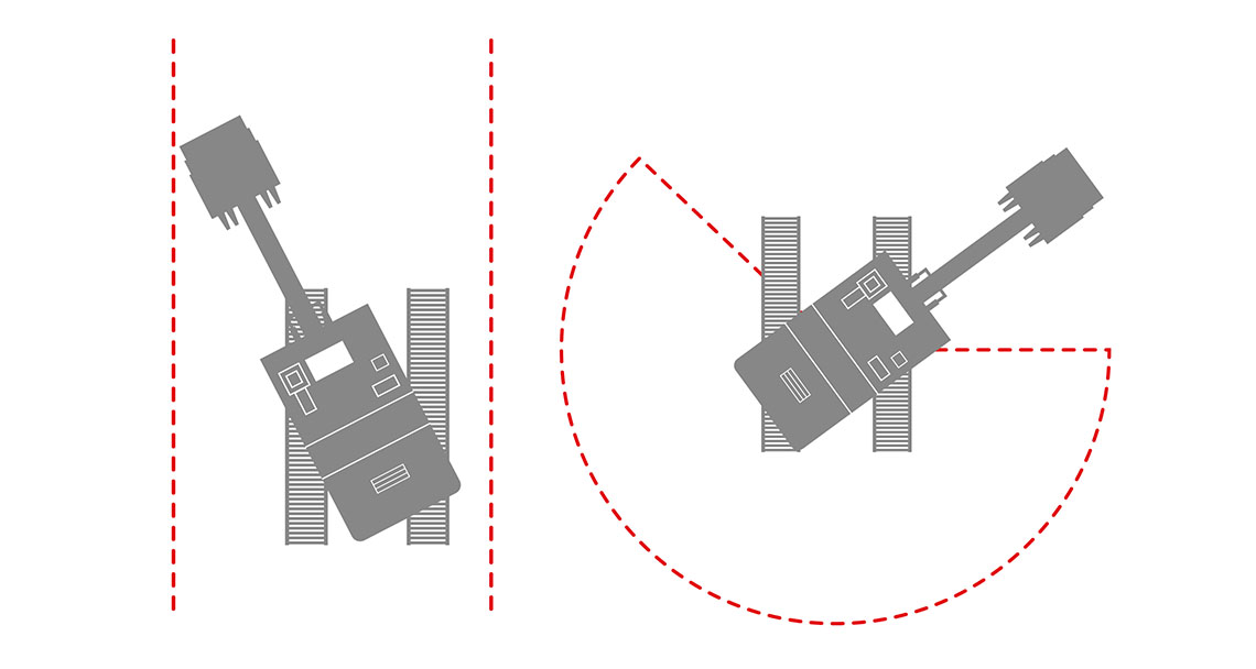 Single/dual parallel wall or angular limitation are available. When walls are in use, the front end equipment is also monitored and controlled for limit breach. Limits can be either manually keyed in or set by positioning the machine. If both limits are active, the system will automatically flip to the appropriate display should a hazard approach occur. Set up is simple, quick, and can be protected with an optional access key switch. All settings are retained and will be active on start-up.